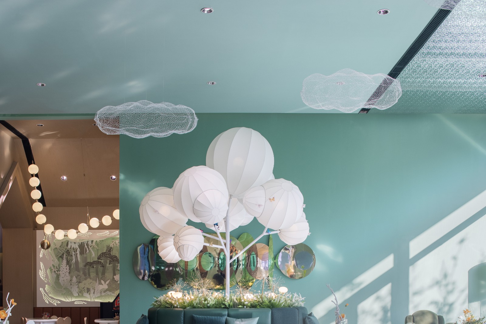 设计提取生态绿意,以温暖的艺术漆结合彩绘的透明装置,为空间增加了灵气、呼应了当地客群对美好生活的憧憬与向往。童话世界从不只属于儿童,更是为城市奋斗打拼一族呈现了追寻的诗与远方