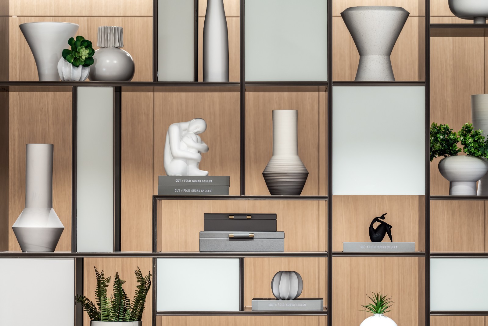 会所空间探讨大道至简的现代主义艺术追求与城市生活的温情体验。基于用户的思想主张与精神认同,设计以充盈现代艺术体味的手法作艺术化装,深度合鸣城市节奏与居住生活。